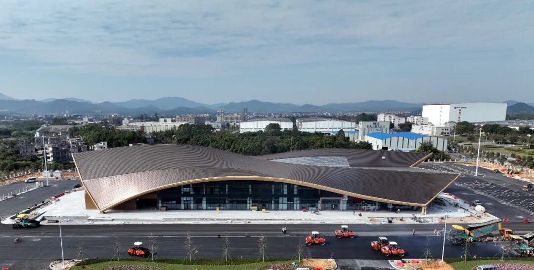 服务楼外观设计从汉代隶书中“瓦”字的“蚕头雁尾”笔触中汲取灵感,将书法艺术线条转化为建筑屋脊造型,钢结构屋盖“两脊一谷”的形态与从化“两脉一廊”的生态格局巧妙呼应,实现了交通建筑与地域生态、文化的有机融合。