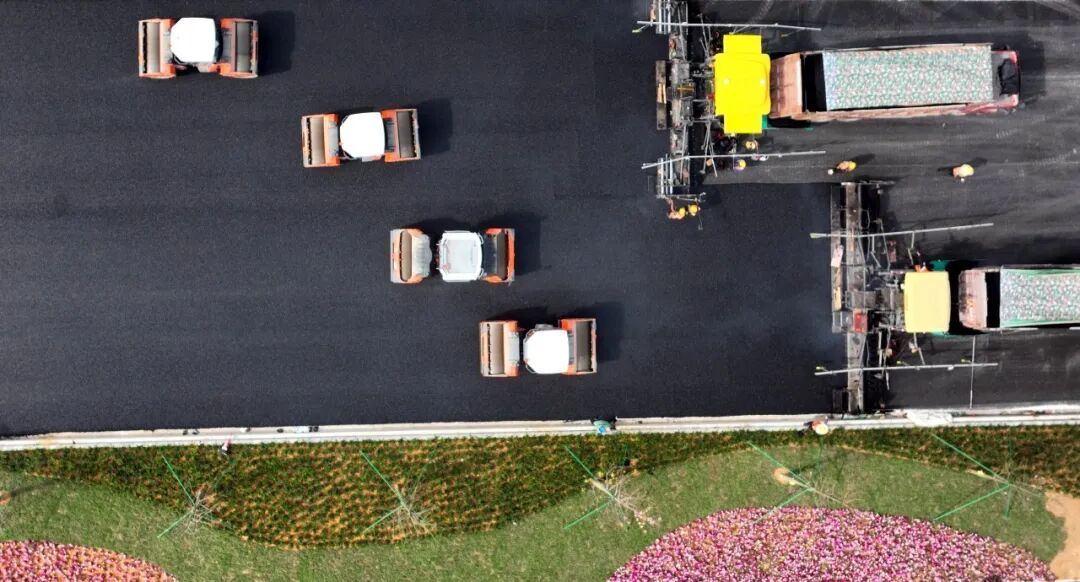 沥青摊铺施工阶段,项目团队成立专项攻坚小组,制定弹性施工方案,依托气象预警精准把握作业窗口,全力保障施工质量与进度。本次施工共投入22台摊铺与压实设备,采用“梯队摊铺、无缝衔接”的作业模式,累计摊铺沥青1.2万吨,完成摊铺面积12万平方米,最终呈现出平整密实、黝黑崭新的高品质路面,为公众提供更安全、舒适的通行条件。