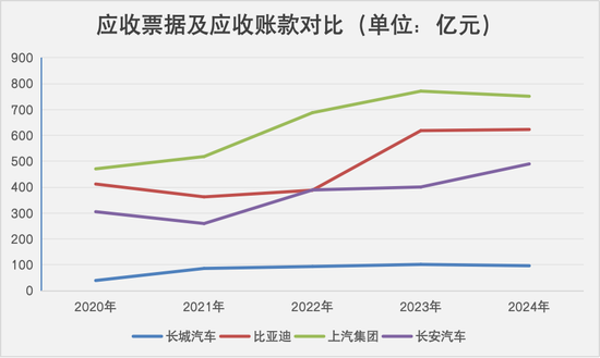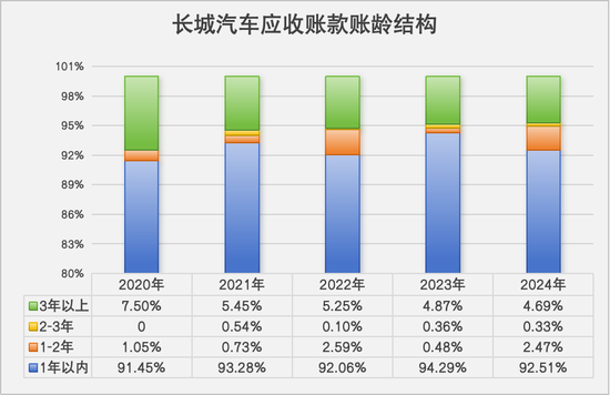应收账款账龄方面,长城汽车表现较为出色。这表明长城汽车能够有效控制长期应收账款风险,持续提升了应收账款管理水平。