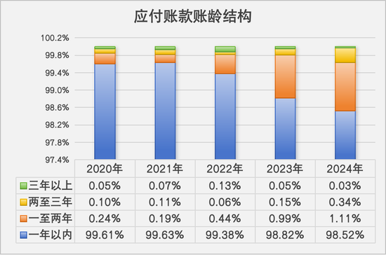 从应付账款账龄结构来看,长城汽车98%以上的应付账款账龄都在一年以内,仅仅是合理利用商业信用延长付款周期,而极少长期拖欠供应商款项,表明企业仍能与供应商保持稳定健康的关系,仍属于风险可控范围。