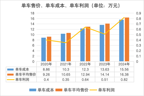 得益于销量结构的改善,2024年,长城汽车单车平均售价为16.38万元,同比提升2.24万元,创下历史新高,较2020年增长7.12万元;2024年,单车利润实现0.82万元,同比提升0.31万元。
