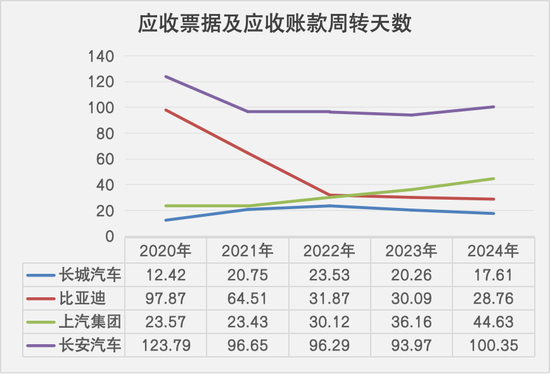 这表明长城汽车在应收管理方面表现较为出色,对于产业链下游有较好的议价能力和控制力,能够快速从产业链下游回收资金,提高资金利用效率。
