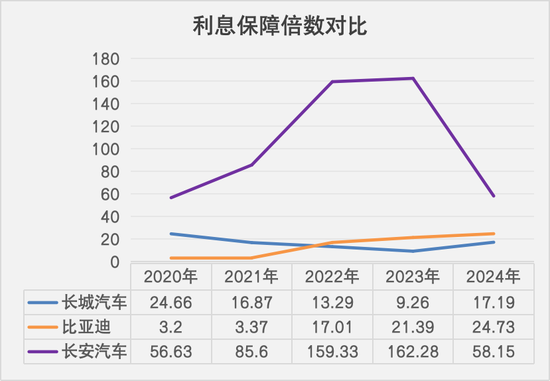 2024年,长城汽车利息费用下降了6.4亿元,利息保障倍数升至17.19,有息负债率则下降至15.82%。
