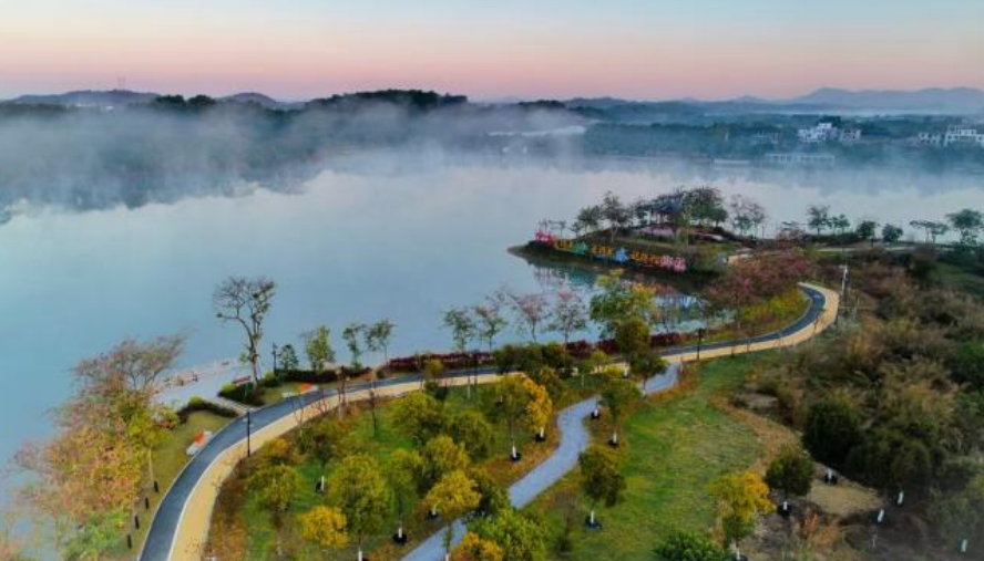 赤坭镇将80年代采矿遗留下300亩的矿坑改造成碧波水漾、鸟语花香的竹洞湖;同时持续推进黑臭水体治理、污水处理、土壤污染保护和修复等工作,全面打造竹洞湖原生态核心区。竹洞农文旅综合体项目正是在竹洞湖生态修复的显著成效基础上,进一步推动生态价值向经济价值高效转化,既是生态修复与旅游发展有机融合的典型案例,更是“美丽中国建设”的生动实践。
